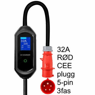 Overgang til 32A (rød) 3-fas 400V CEE portabel elbillader